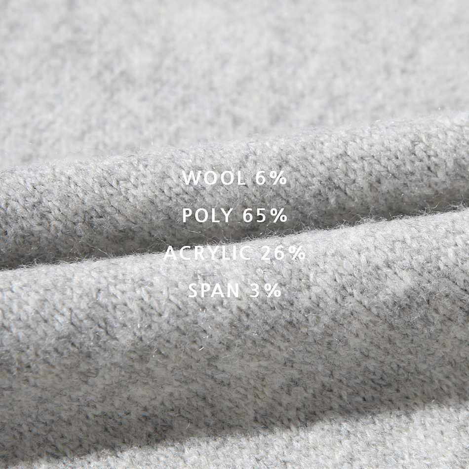 POLYESTER 66% ACRYLIC 26% WOOL 6% SPAN 3%